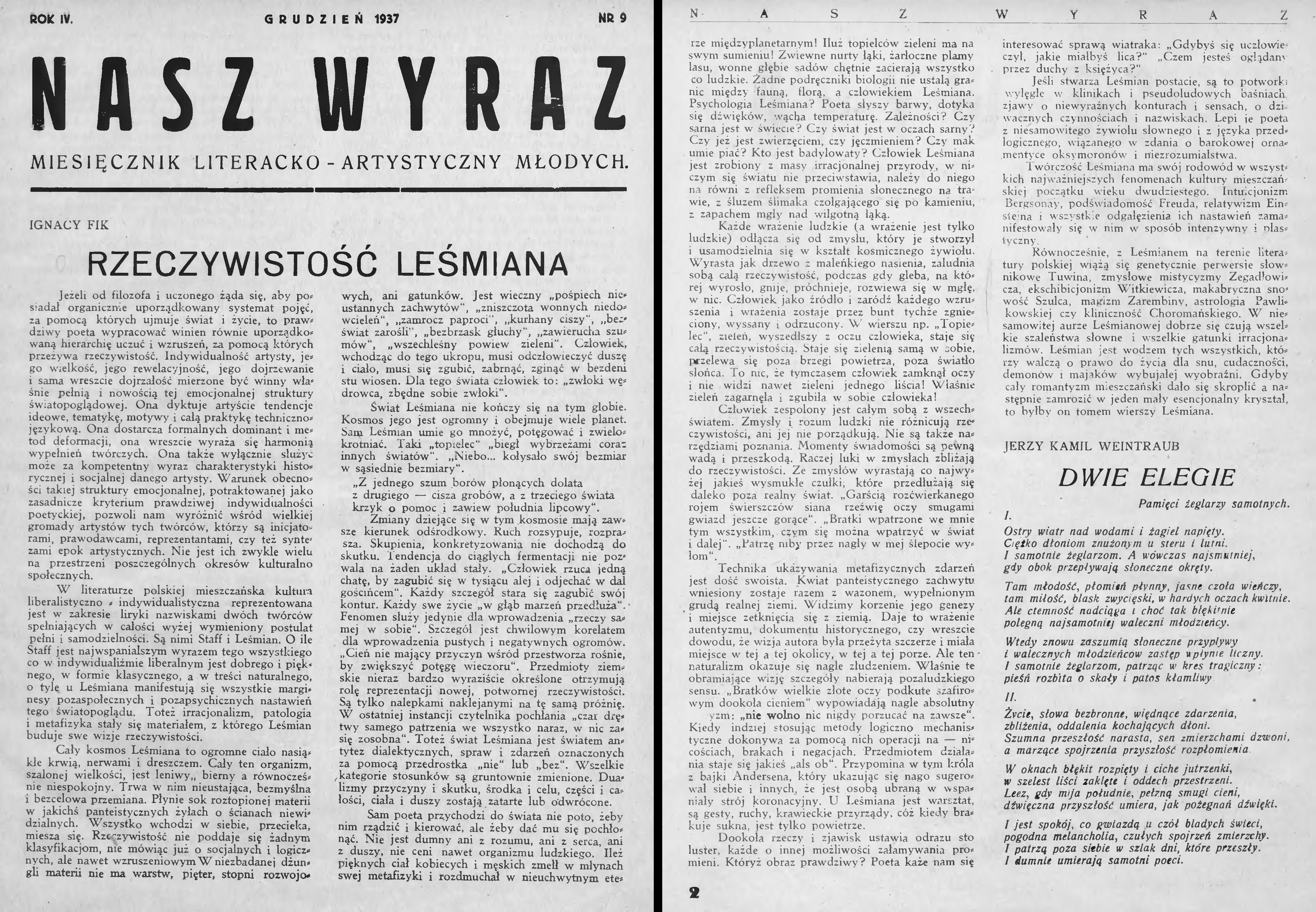 - Fik, Ignacy: Rzeczywistość Leśmiana. W: Nasz Wyraz: miesięcznik literacko-artystyczny młodych. R. 4: 1937, nr 9, s. 1-2 5820 IV czasop. Pełny numer czasopisma znajduje się w zbiorach Jagiellońskiej Biblioteki Cyfrowej.